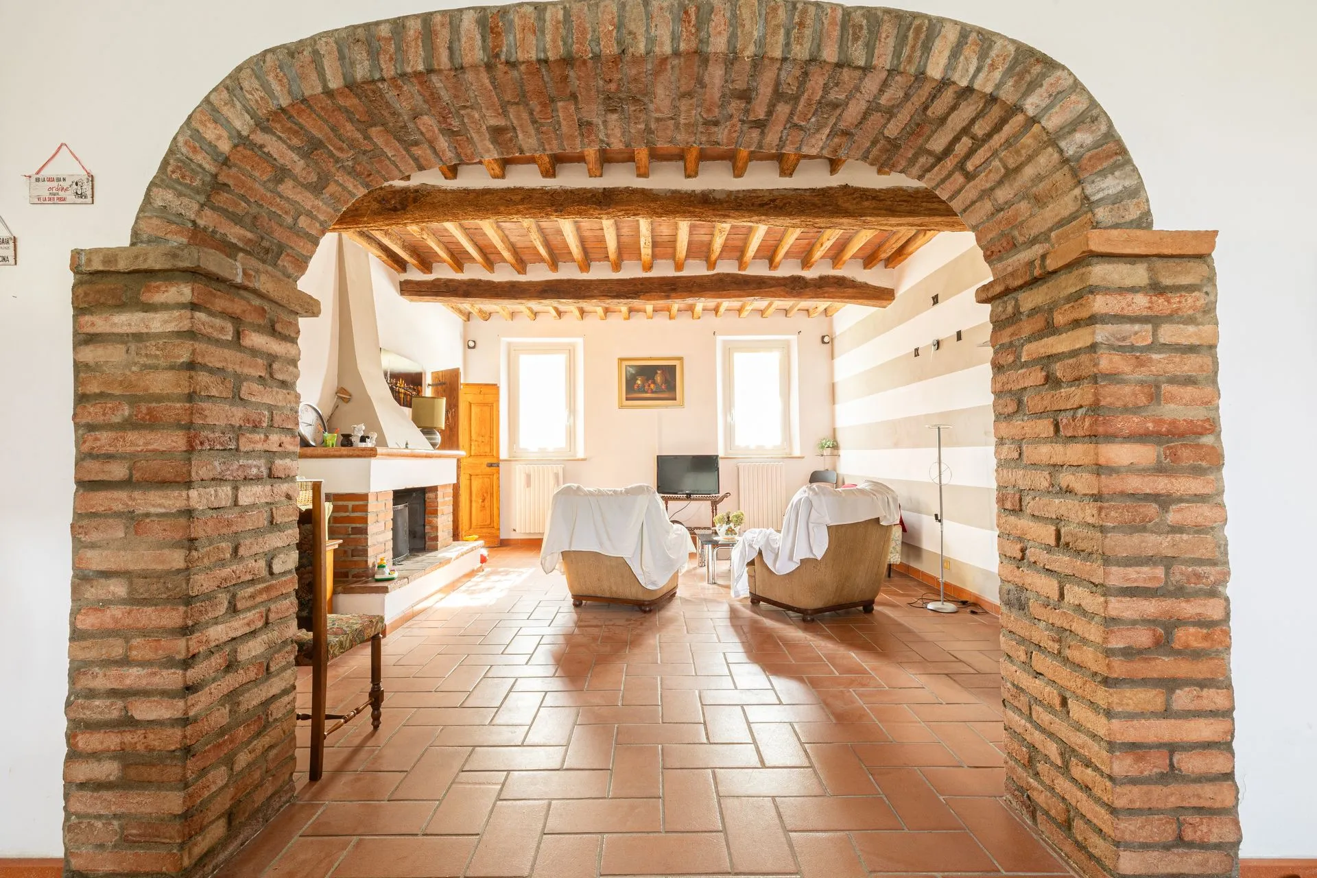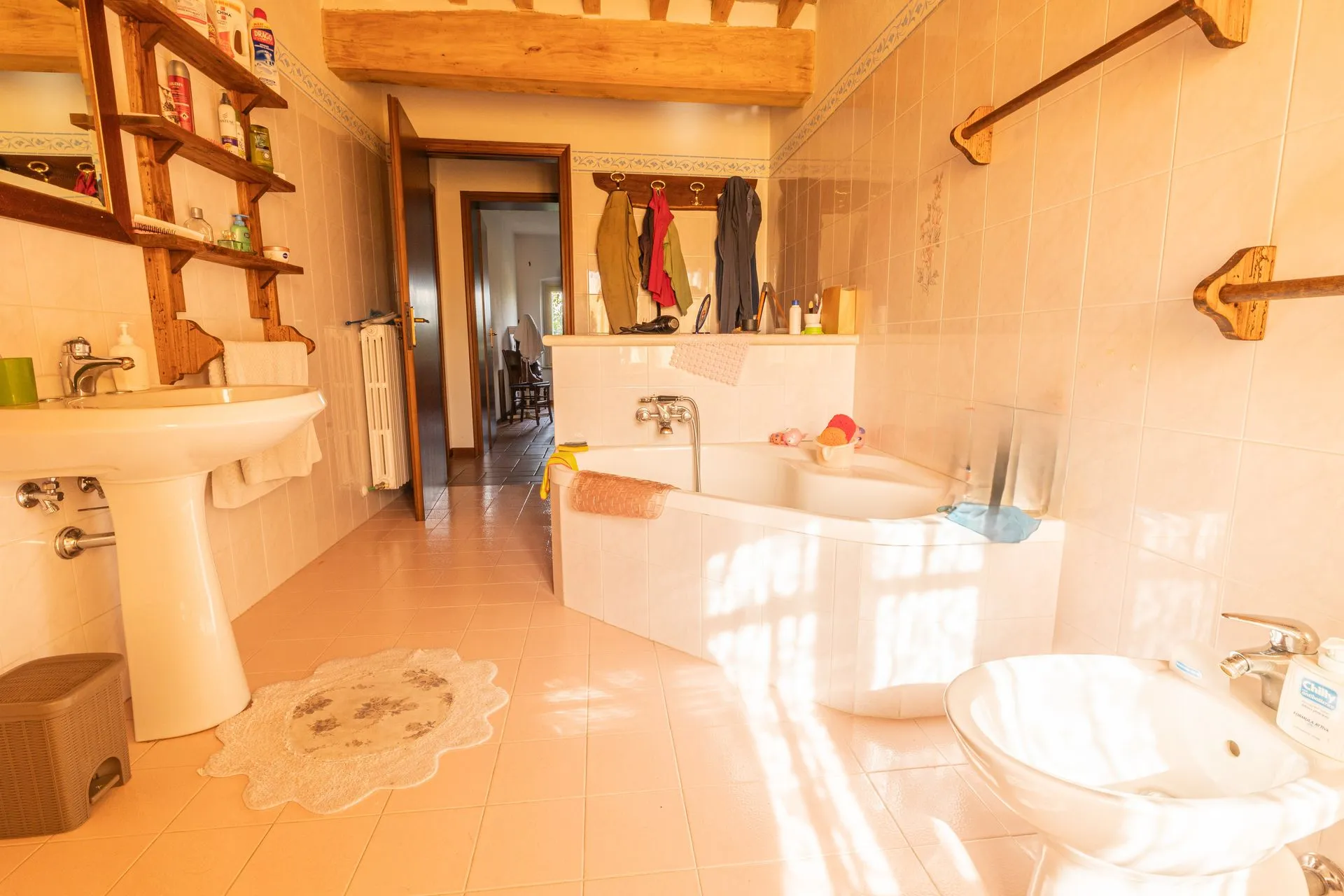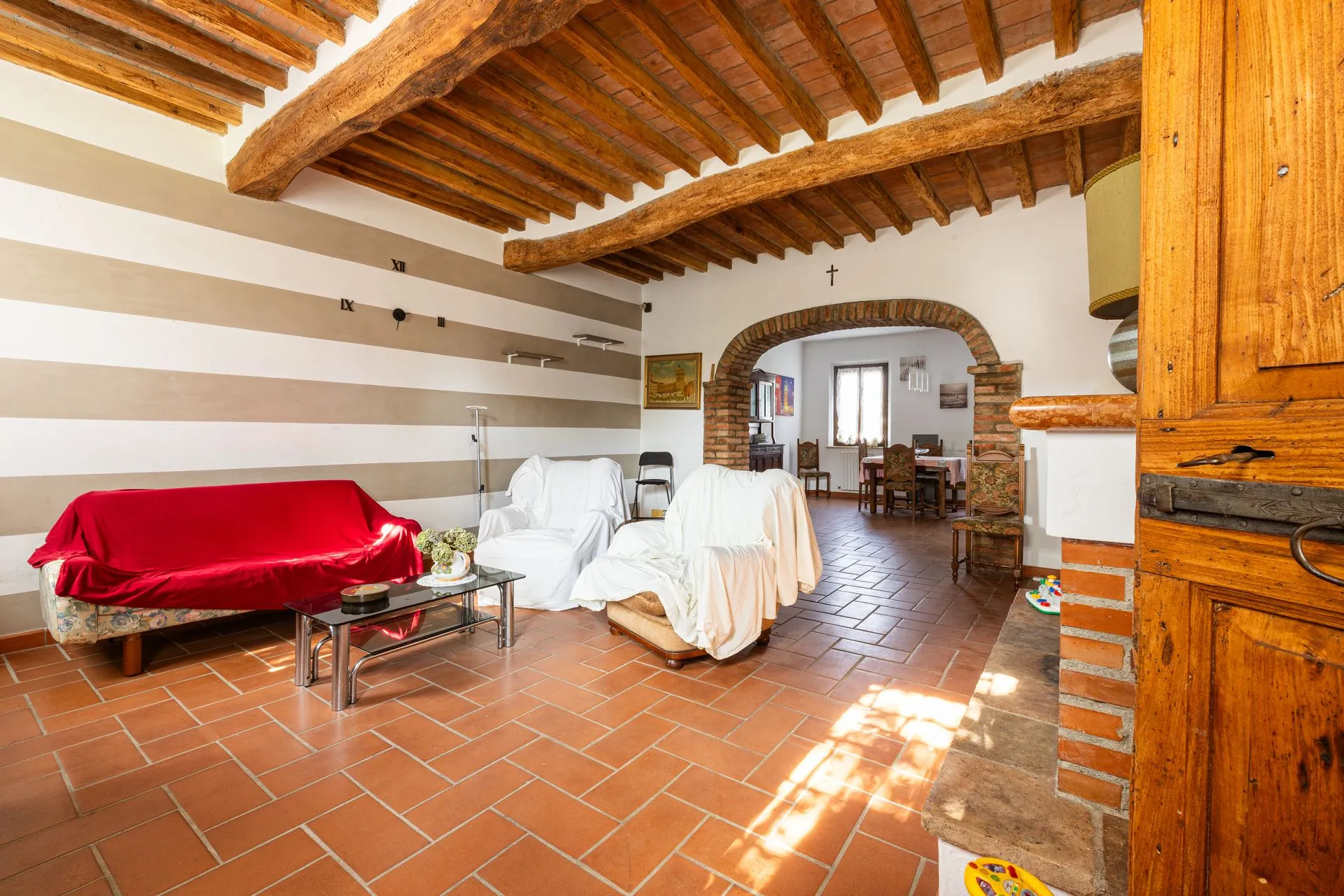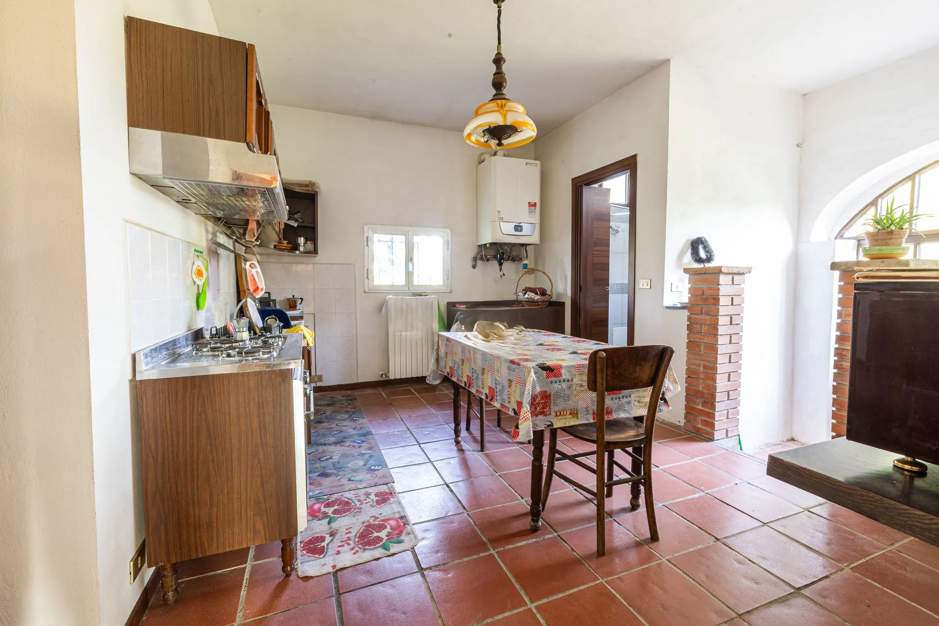 Un’abitazione è stata completamente ristrutturata ed è composta da un ampio corridoio d’ingresso, cucina abitabile, soggiorno locale caldaia e piccolo bagno al piano terra, tre ampie camere matrimoniali e bagno al primo piano e la scala prosegue fino al sottotetto dove, un’ampia terrazza, fornisce una vista spettacolare sulla campagna circostante.