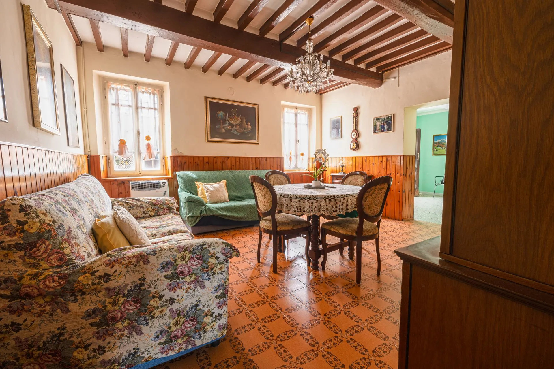 La seconda abitazione necessita di alcune opere di ristrutturazione, sopratutto al primo piano. É composta da corridoio d’ingresso, cucinotto, sala da pranzo, un salone, due bagni (di cui uno di nuova costruzione) e cantina al piano terra, tre camere al primo piano e locali ad uso sottotetto.